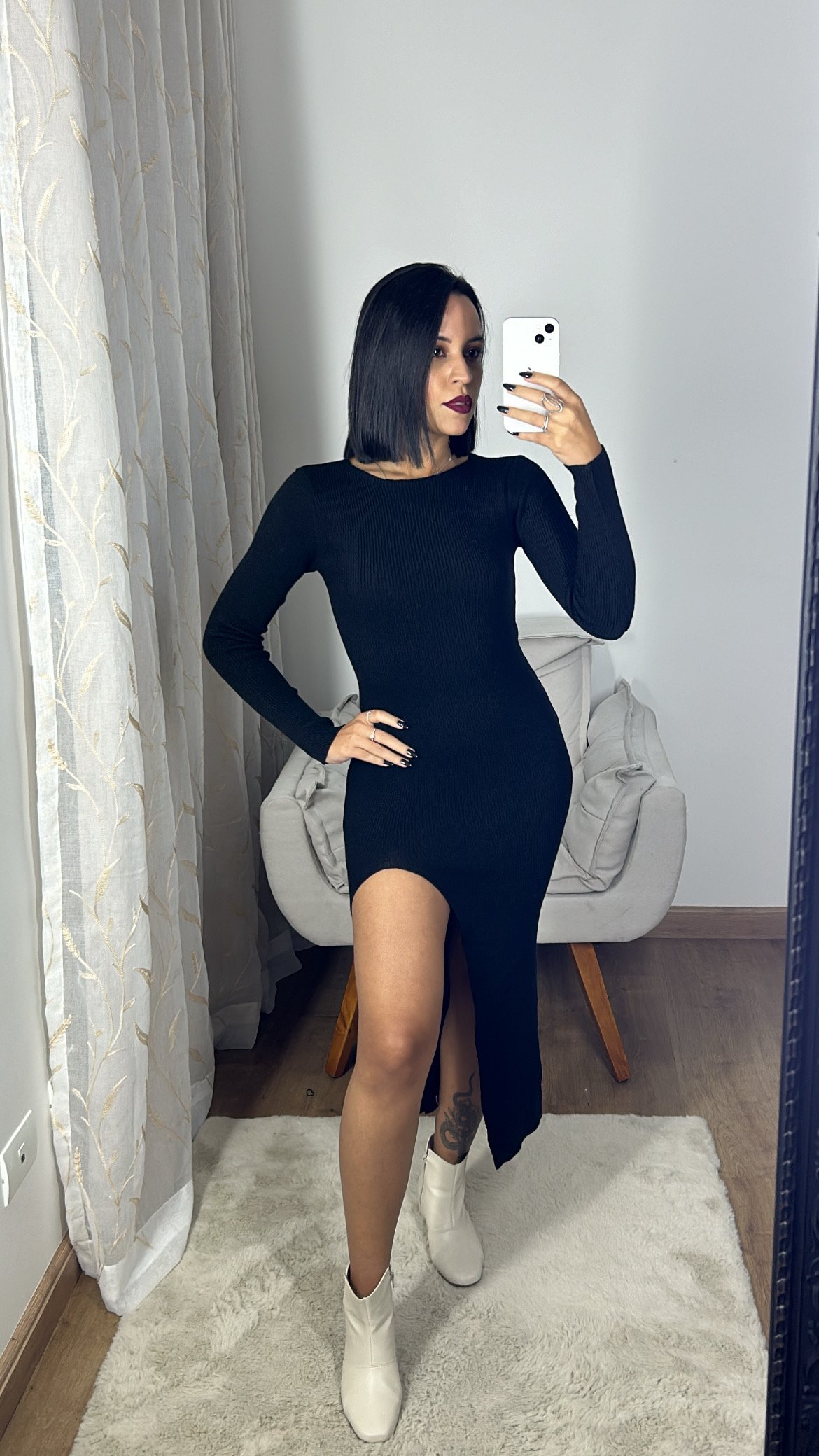 • Vestido Midi Tricot com fenda alta;