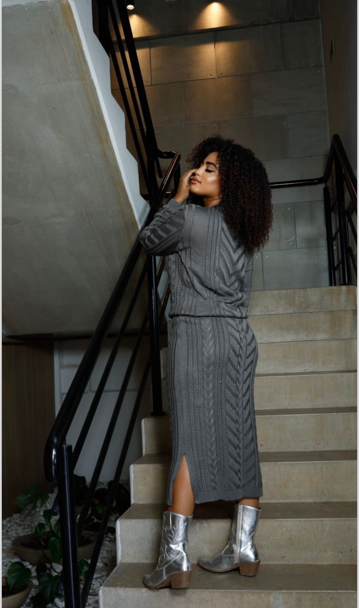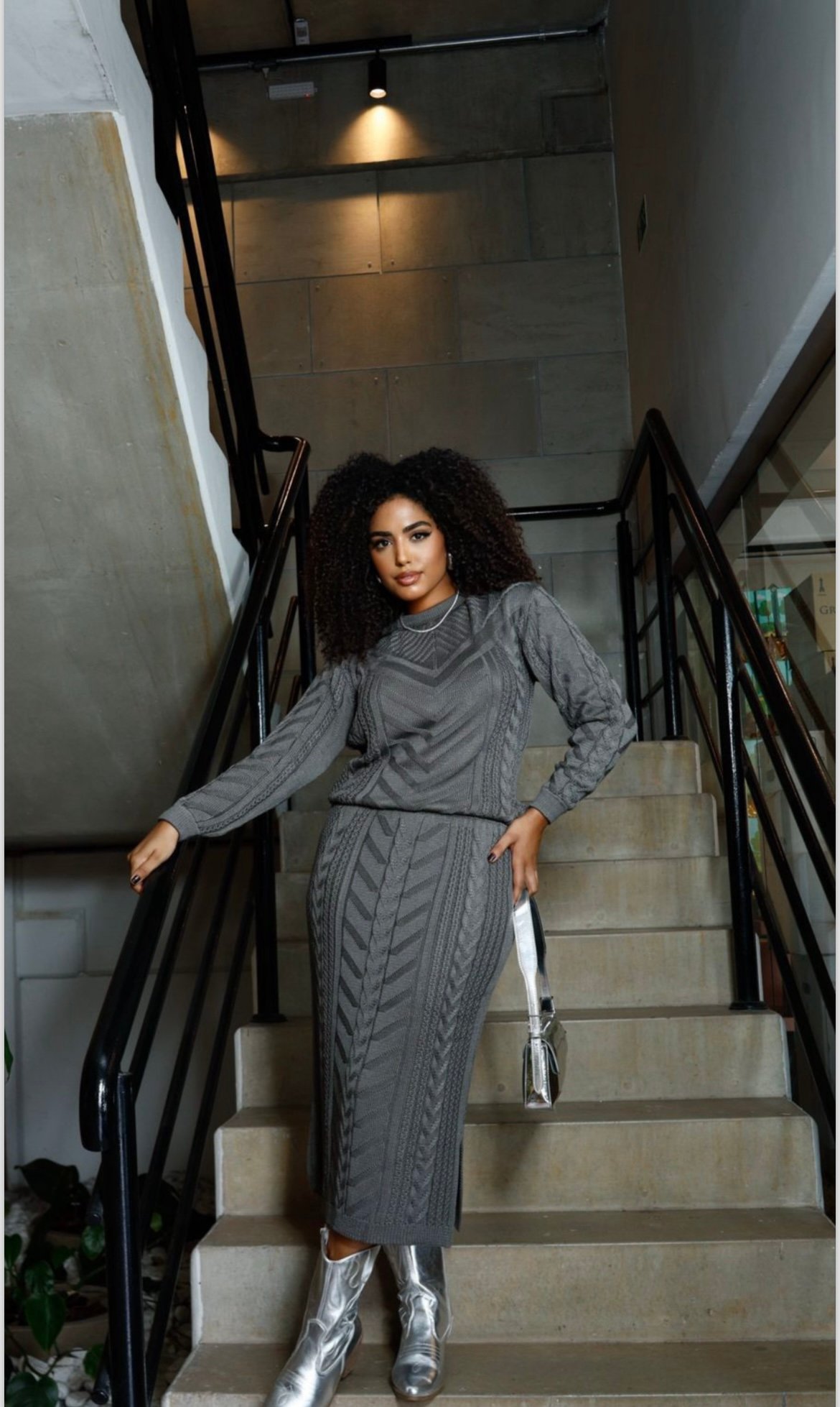 • Conjunto Tricot com detalhes na saia e na blusa;